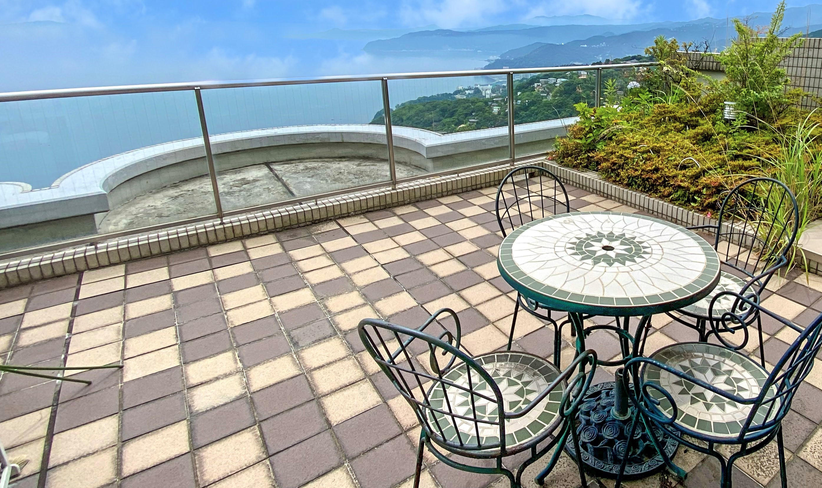 伊豆山の南側斜面に沿ってひな壇状に作られており各住戸のルーフバルコニーからは豊かな緑に囲まれながら大海原を望むという贅沢なロケーションです。