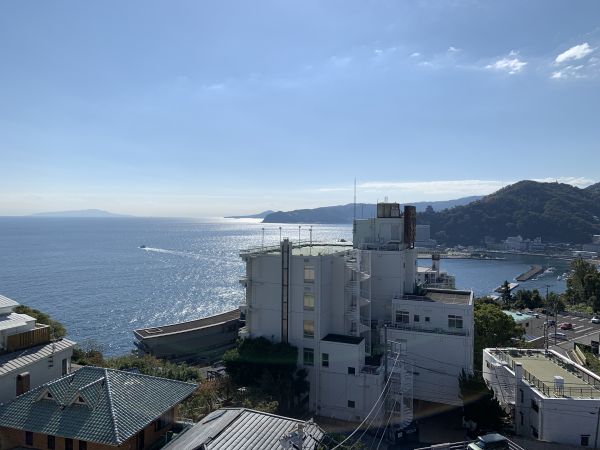 【プレジデント熱海】共用廊下側からは熱海市街を一望、そしてバルコニーからは穏やかなる相模灘を見下ろすロケーション。熱海ならでは眺望が貴殿を癒すこと間違いなし。同マンションのご売却・ご購入のご相談はロイヤルリゾート株式会社熱海駅前店の「内田(うちだ)」まで。