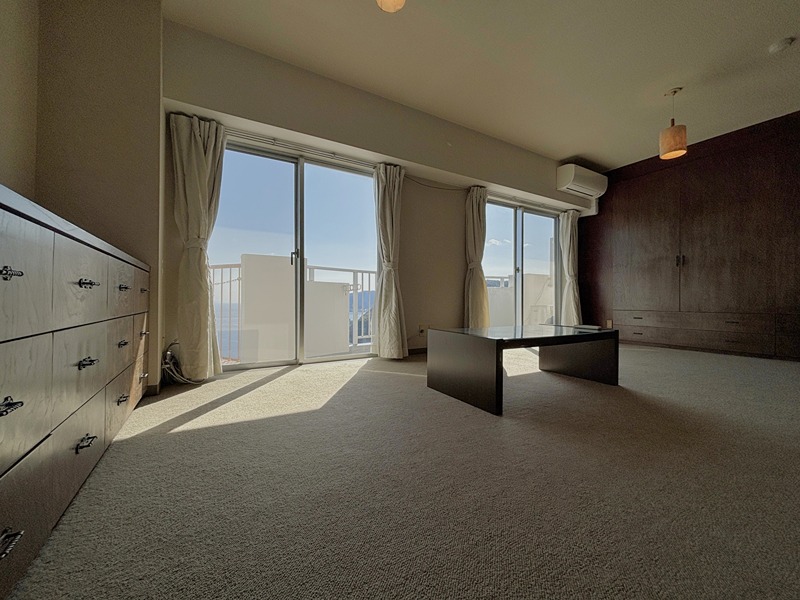 海一望の高台に建つマンション。南東角部屋の1LDK。 サウナ付温泉大浴場など多彩な共用施設◇駐車場に空きがあれば無料で使用可能(1世帯1台)◇熱海駅行の送迎バスあり