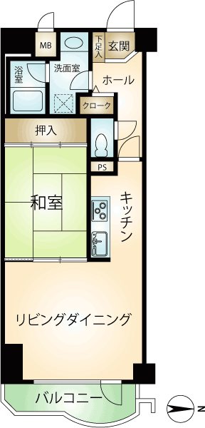 専有:23.59m² / 1K