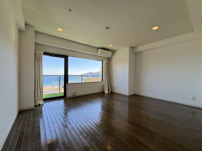海沿いに建つ、温泉大浴場など施設充実の大型リゾートマンション。 海側を向いている日当りのよい室内は状態も良好です。