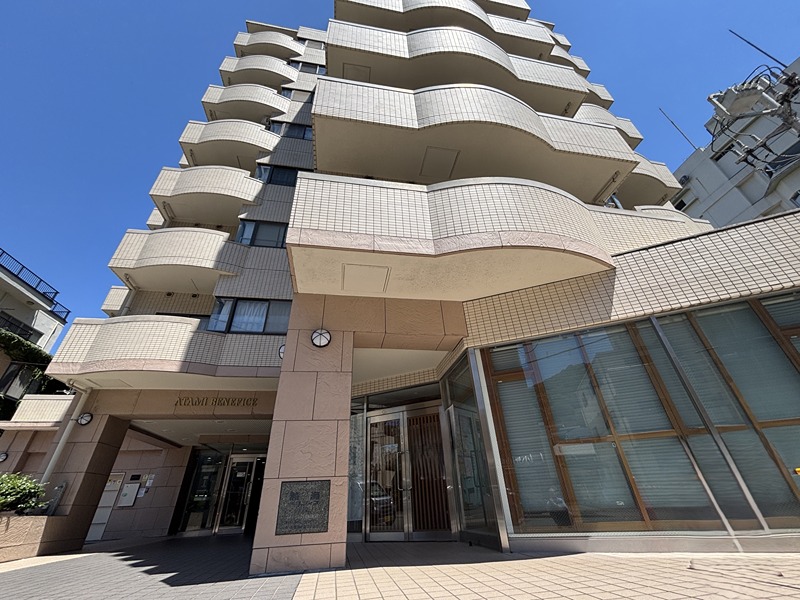 熱海駅から車で約10分。海際に建つ大型リゾートマンション! 海を見渡す展望温泉大浴場ほか、館内共用部が充実しています。