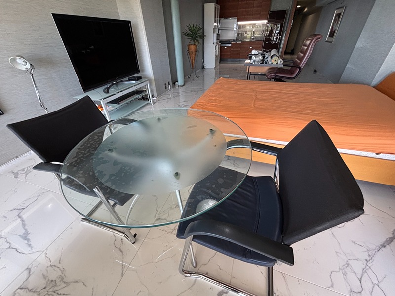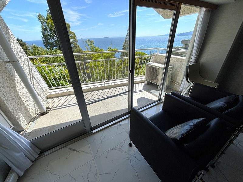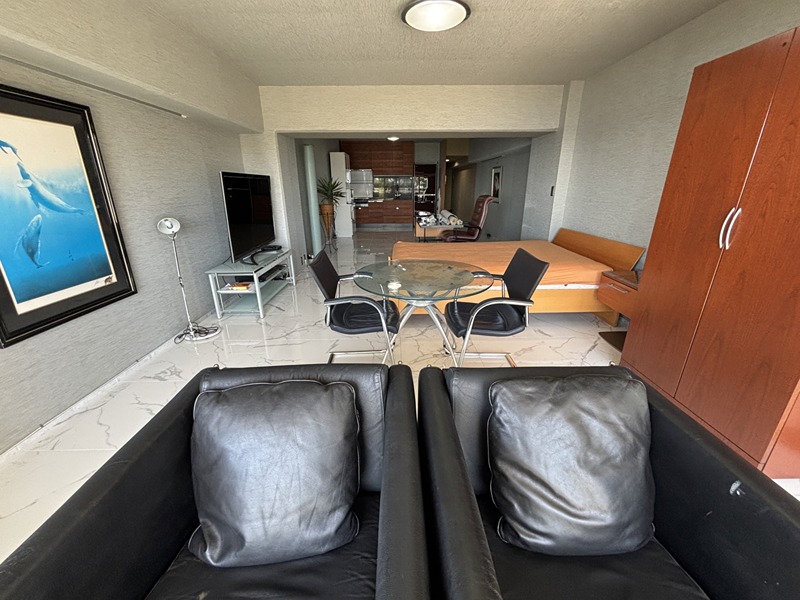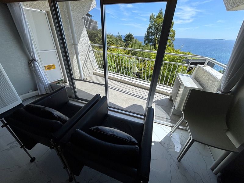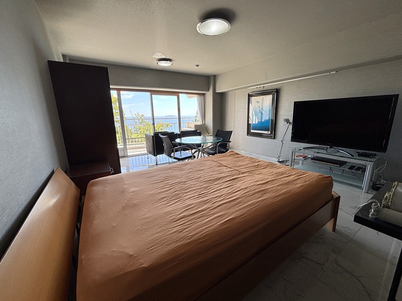 竹中工務店施工の「プラザ伊豆山」。レトロな趣のレンガタイルで飾られたエントランスやロビー。温かみと重厚感、穏やかに時が流れるような優雅な雰囲気を醸し出しているリゾートマンションです。屋外プールや温泉大浴場、卓球コーナー、レストランなど共用部が充実しています。この中で2階59.48㎡広々1Rが賃貸で登場。元は和室付1LDKタイプを2022年8月開放的空間に大改装。デザインや仕様ひとつひとつ細部までオーナーの拘りが込められているリゾート空間です。