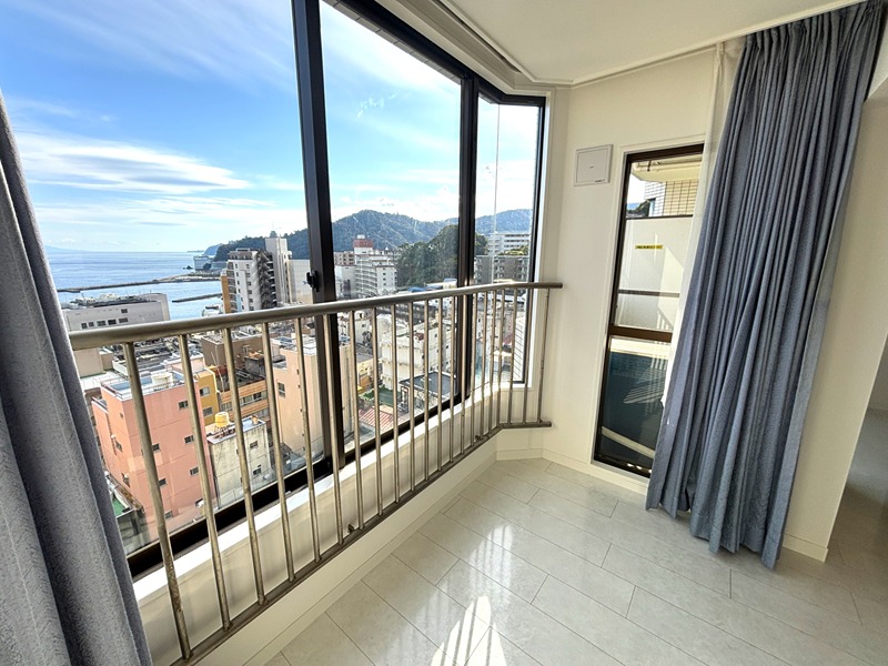 約17帖分のリビングダイニングとそれに続く大きな8畳間の和室が、開放的な大空間を生み出しています。窓から見える南東向きの海と熱海の街、夜には夜景や海上花火が打ち上げから観られます。温泉大浴場の他にアスレチックルームやプレイルームなどの共用施設もあり、至近には「マックスバリュEX」もオープンし生活便も良く、定住の方にもお勧めのゾートマンションです。