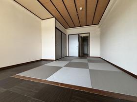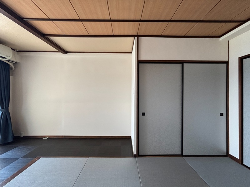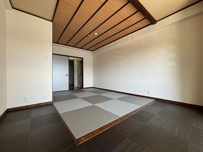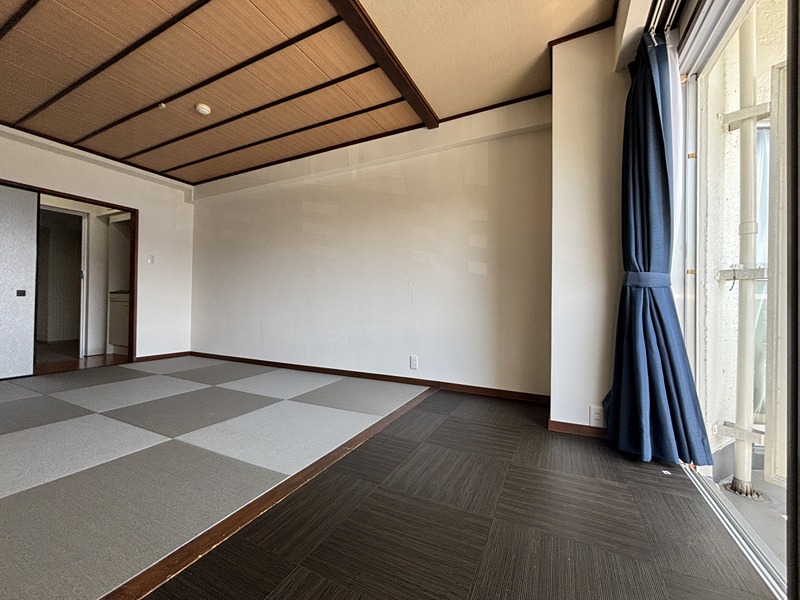 海際に建つ大型リゾートマンション「シャトーテル赤根崎」から、南向き和室タイプが賃貸で登場。グレー色の琉球畳が使用されモダンな印象。元々段差のあった広縁部と畳の高さをフラットにし、間仕切障子も取り払って寛ぎ空間を最大限に広げています。当初大型ホテルであっただけに館内の共用部は屋外プール、談話室、図書室、アスレチックルーム、卓球ルーム、カラオケルーム、コインランドリー、キッズルーム、パントリーなど豊富な施設。そして毎日入れる温泉は、海を見渡す展望温泉大浴場です。