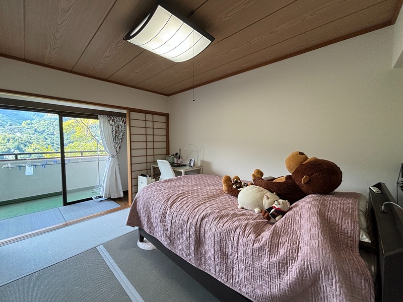 四季の変化を山の彩で感じられる眺望が楽しめる1LDKのお部屋。