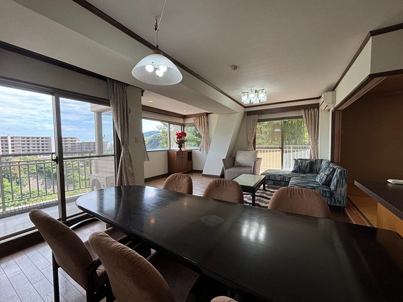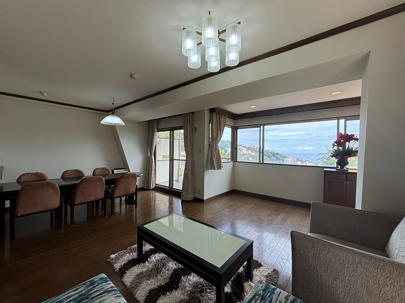 熱海梅園、来宮神社も徒歩圏内。熱海の賑やかな街から少し離れた来宮に建つリゾートマンション【タオコート熱海】からフロント階と同階の4階角部屋が賃貸で登場です。賃貸でペット可マンションが少ないですがこちらのお部屋はオーナー様の「ペットと一緒に部屋に向かうときにフロントと同じ階だとスムーズに行ける」という思いからご購入されたそうです。もちろんペットをお連れではないお客様も募集しております。お部屋で戸別温泉も楽しめるのは嬉しいポイントです。