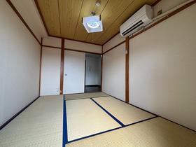 神社左手の道を約350mほど上っていくと、道沿いに建つ「コーポ鈴木」というアパートがあります。2階の南西向き2DKタイプのお部屋で、見晴らしも良いワイドなバルコニーが特徴です。またバスとトイレも別々になっています。