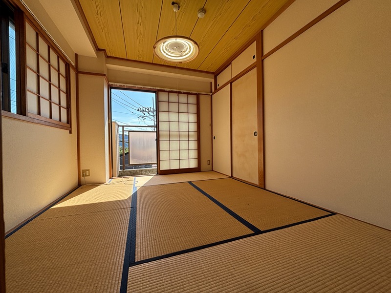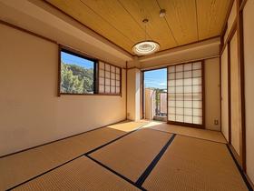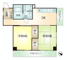 神社左手を約350mほど上っていくと道沿いに建つアパート「コーポ鈴木」。2階の南西向き2DKタイプのお部屋で、見晴らしも良いワイドなバルコニーが特徴です。またバスとトイレも別々になっています。