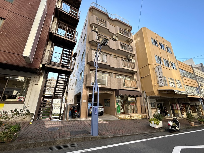 熱海駅より徒歩5分(約400m)「ファンシービル」302号室で賃貸空き室が出ました。改札口から活気あふれる平和通名店街を通り抜け、咲見町商店通り沿いに出ますとまもなくビルが見えてきます。コインランドリーはすぐ隣のビル。コンビニ(セブンイレブン)45m(徒歩1分)。スーパー(マックスバリュー咲見町店)320m(徒歩約4分)。その他多くの飲食店等が軒を連ねる通り沿いのため、外食や食品の買出し、駅への徒歩移動がとても楽な立地です。