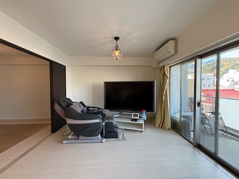 熱海で生活するには一押ししたいマンション【ラグゼシア熱海静漣閣】から5階のお部屋が賃貸で登場です。坂ばかりの熱海ですがこのマンションは平地に建っており、徒歩圏内にマックスバリュー、コンビニ、商店街がありとても便利です。バス停も近いので安心です。写真に写っている家具家電はご入居までに一掃し、スケルトンでのお渡しになります。温泉大浴場、家族風呂が利用できるのも嬉しいポイントです。