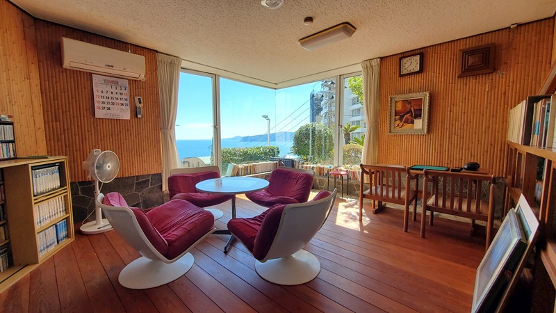 屋上で海と熱海の街並みや山の緑までが大パノラマで一望できます