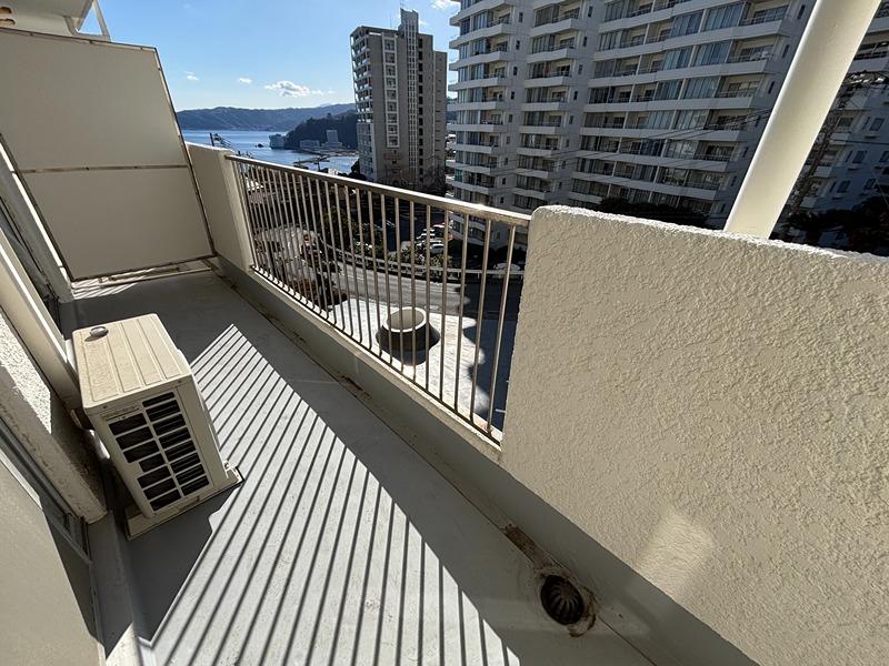 バルコニー左側からは海を望み、海上花火鑑賞も可能。