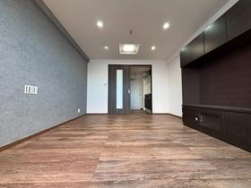 アクセントクロスにダウンライトがとてもおしゃれな造りです。狭い3点ユニットバスを壊し、シャワーブースと洗面台トイレをセパレートに改装しています。また玄関横に洗濯機置場が造られていることもうれしい点です。館内の豊富な共用施設もご利用いただけます。