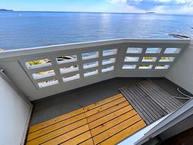海際に建つ大型リゾートマンション「シャトーテル赤根崎」から、海一望東向き洋室ワンルームタイプが賃貸で登場。シックなブラウンのフローリングに造作棚。グレー色の