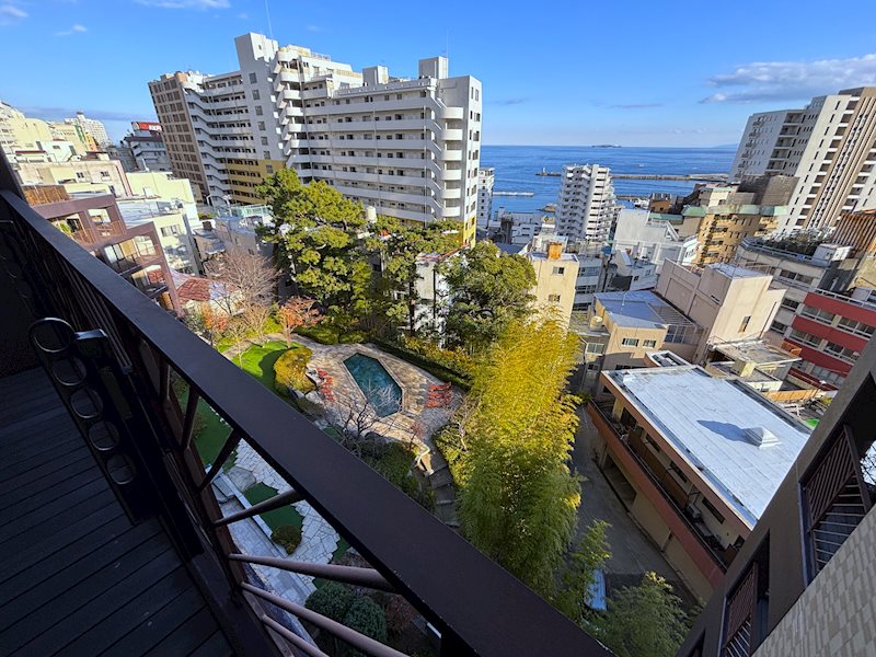 熱海駅から徒歩約10分、スーパー徒歩約2分、市街地へ向かうなだらかな坂道の途中に建っています。旧宮家出身の侯爵「小松 輝久」の別邸だった跡地を、昭和21年譲り受け、侯爵の雅号「翠園」の名を引用し、「翠光園」という名のホテルが営業されていました。現在もその名を受け継いだ分譲リゾートマンションとなっています。16.8㎡ある広々したバルコニーからは、熱海の海と市街地、海上花火鑑賞もできます。