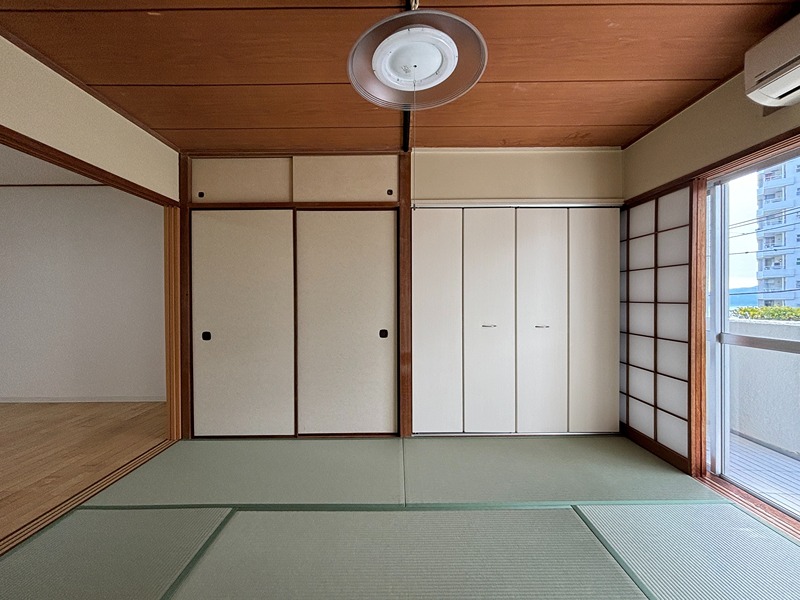 熱海サニーハイツ2号棟から賃貸物件の登場です。白を基調とした居室内で清潔感のある室内です。和室部分にはクローゼットを取り付けて古さを感じさせません。大型リゾートマンションならではのゆったりとした時間をお過ごしいただけます。ぜひ一度ご見学にお越しください。