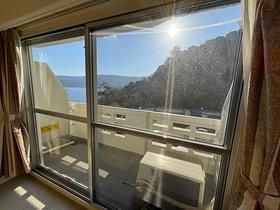 海際に建つ大型リゾートマンション「シャトーテル赤根崎」から、西向き洋室ワンルームタイプが賃貸で登場。グレージュの厚手カーペットにポピュラーなアイボリー色の壁紙が明るさ、やわらかな温かみ、清潔な印象をもたらしています。当初大型ホテルであっただけに館内の共用部は屋外プール、談話室、図書室、アスレチックルーム、卓球ルーム、カラオケルーム、コインランドリー、キッズルーム、パントリーなど豊富な施設。そして毎日入れる温泉は、海を見渡す展望温泉大浴場です。