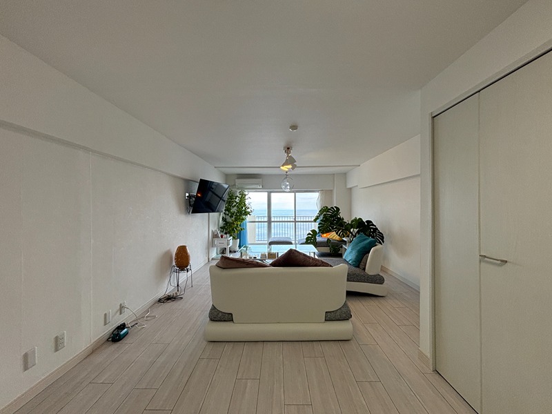 熱海のリゾートマンション【熱海サニーハイツ】から最上階が賃貸物件として登場です。白を基調とした居室は入った瞬間から明るく、バルコニーからは海を眺められて、リゾート感満載の空間です。家具家電も残置物としてご利用いただけるので入居後すぐに生活が始められます。マンション内にはたくさんの共用部があり、ご家族ともご友人とも楽しめます