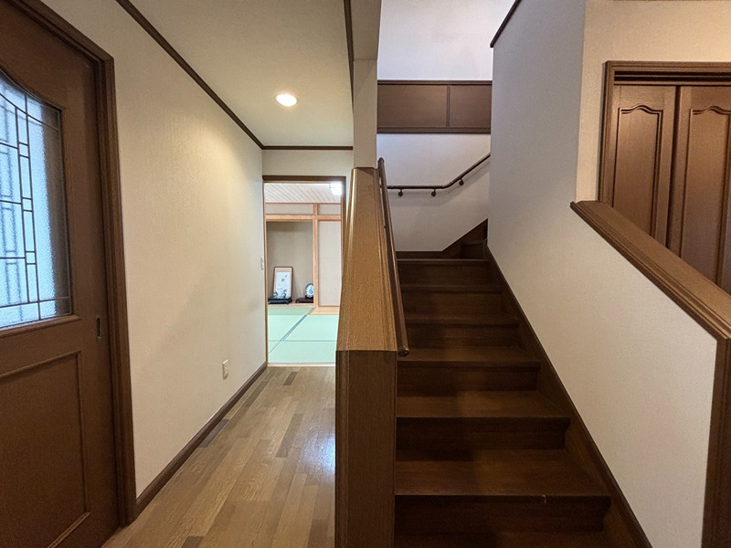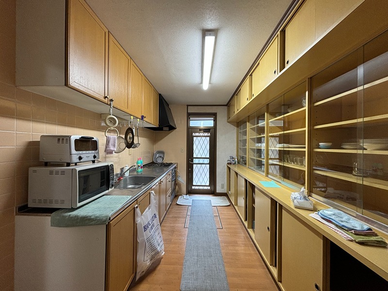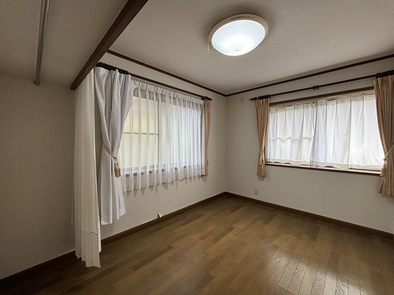 | 設備 | 陽当たり良好、洗濯機、冷蔵庫、ダイニングテーブル・デスク、3口以上コンロ、勝手口、エアコン、クローゼット、シューズボックス、押入、階段下収納、トイレ2ヶ所、洗面化粧台、洗面所に窓、浴室に窓、家庭菜園、土間、屋外駐車場 | ||