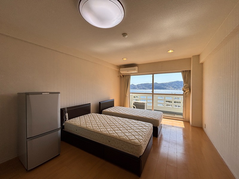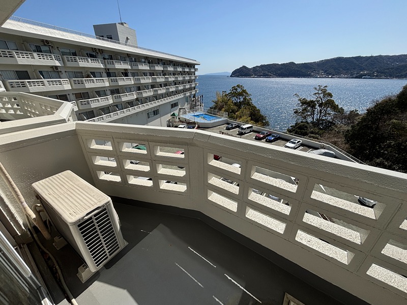 海際に建つ大型リゾートマンション「シャトーテル赤根崎」から洋室タイプが登場! 当初大型ホテルであっただけに館内共用部は屋外プール、談話室、図書室、アスレチックルーム、卓球ルーム、コインランドリー、キッズルームなど豊富です。毎日入れる温泉は海を見渡せる「展望温泉大浴場」です。