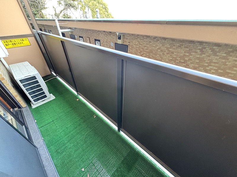 南東向きバルコニーの前方は別棟が見えますが、キラキラ午前の陽が反射する海の水平線は望むことができます。