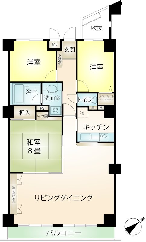 □ オーナーチェンジ物件 □ ビーチコースト5階2LDK □ 紺碧の相模湾望む □ 男女温泉大浴場・プライベートスパ 吉浜海岸まで徒歩約5分(約350m)