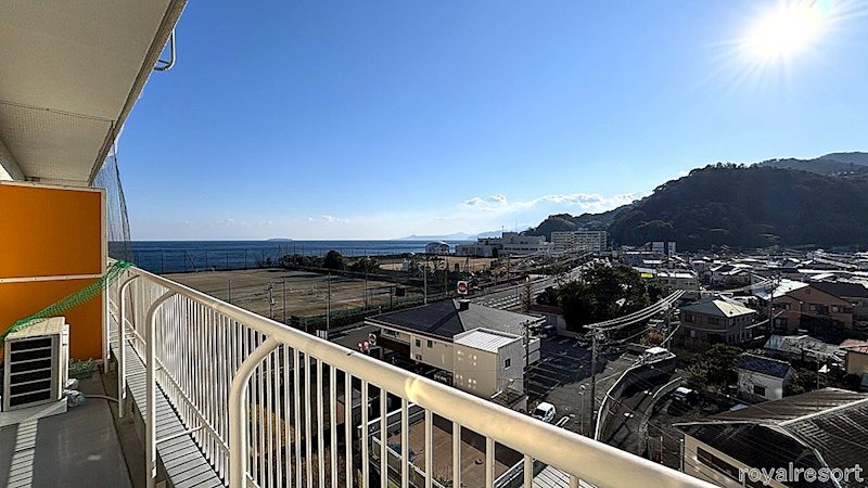 利便性が富む湯河原ロイヤルハイツ。B棟高層階7階のお部屋。眺望は、B棟の高層階だからこその景色をお部屋から楽しめます。