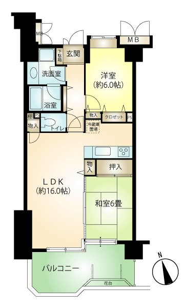 専有:60.57m² / 間取り:2LDK