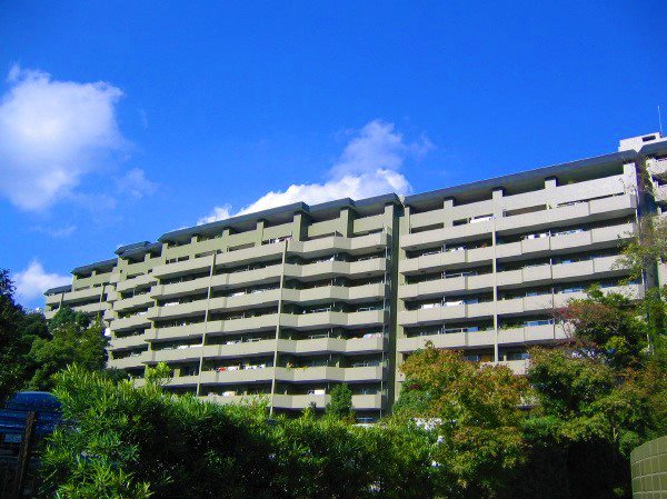 □ 全47戸・西山の閑静な住宅地に建つリゾートレジデンス   □ 日当たり良好な南向き □ バス停まで徒歩約1分 □ 昭和レトロなマンション外観