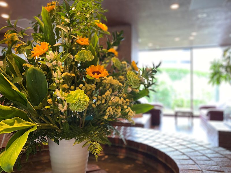 〇高台から望むパノラマ眺望 ●温泉大浴場、館内レストラン 〇無料送迎バスあり ●安心のナースコールあり