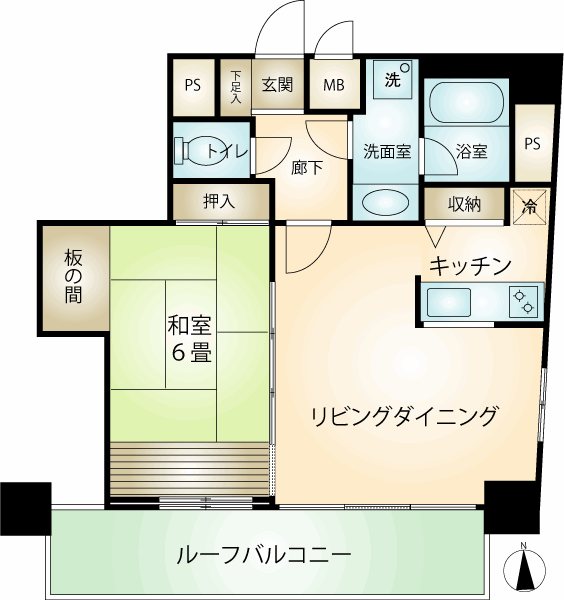 ●海と山を一望できる日当たり良好南向き49.50㎡ 1DK+サンルームのお部屋