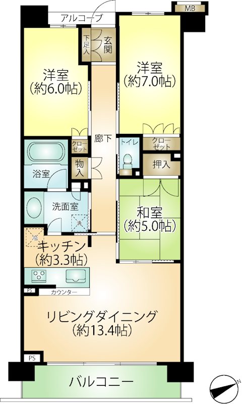 専有:73.46m² / 間取り:2LDK