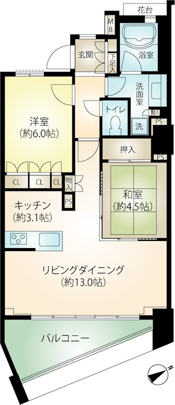 専有:65.51m² / 間取り:2LDK