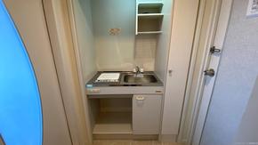 キッチン:IHを使用しコンロは1口ございます。簡単な料理には重宝します。