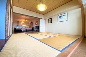 和室:バルコニー側に8畳の和室があり、さらに旅館のような広縁もあります。