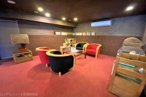 ラウンジ:赤い絨毯が印象的なラウンジ。後方には自動販売機などがございます。