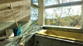 伊豆石を用いた温泉引込済みの浴室です。現在のオーナー様のお気に入りの場所でもあります。