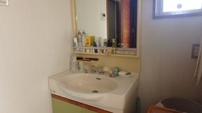 お風呂の手前にはこちらもコンパクトサイズの洗面台があります。きれいにお使いになられています。