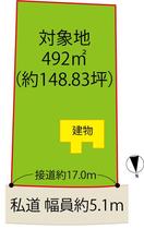 主な接道 | 私道、北、幅員:5.1m、接道長さ:17m、舗装あり、主たる接道 | ||