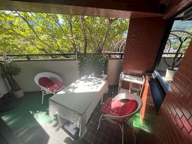 バルコニーは奥行きがあるので、晴れの日はこちらでお食事はいかがでしょう。春には桜の花が咲き誇ります。