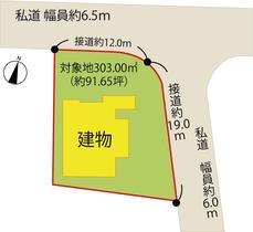 | 主な接道 | 私道、北、幅員:6.5m、接道長さ:12m、舗装あり、主たる接道