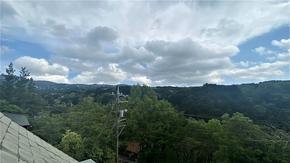 2階からの眺望です。別荘地内の山肌に建つ別荘が見られます。