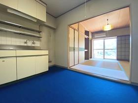 【DK・和室】爽やかな碧い床材のDKと抜けた景色を愉しむ和室。