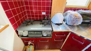 2口ガスコンロの設置です。コンロ横のスペースも広いので調理もはかどります