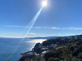 バルコニーから紺碧の相模湾が一望。川奈ホテルまで見えます。