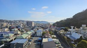 西側のお部屋からの風景です。奥湯河原方面の眺望です。