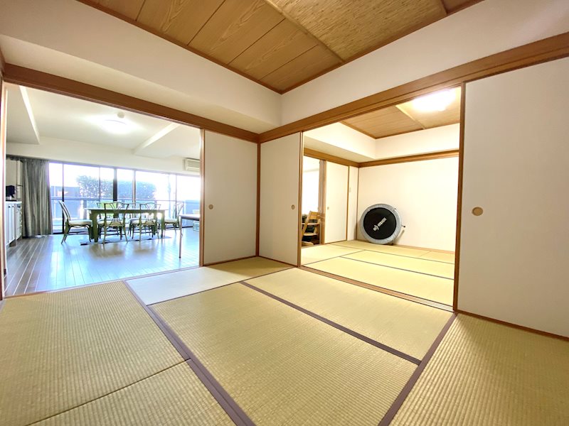 【和室】和室から全体を見渡すとマンションの一室には感じられない開放感がございます。