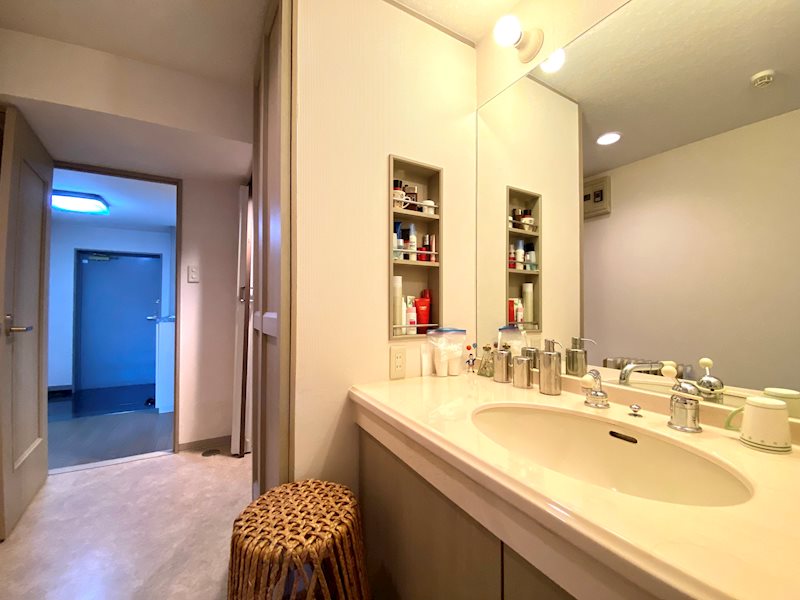 【洗面室】こちらも間口が広く贅沢な設計となっております。
