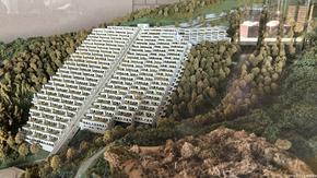 斜度28度の南東向き傾斜地に建てられた外観。マンション名は常緑樹パサニアに由来。